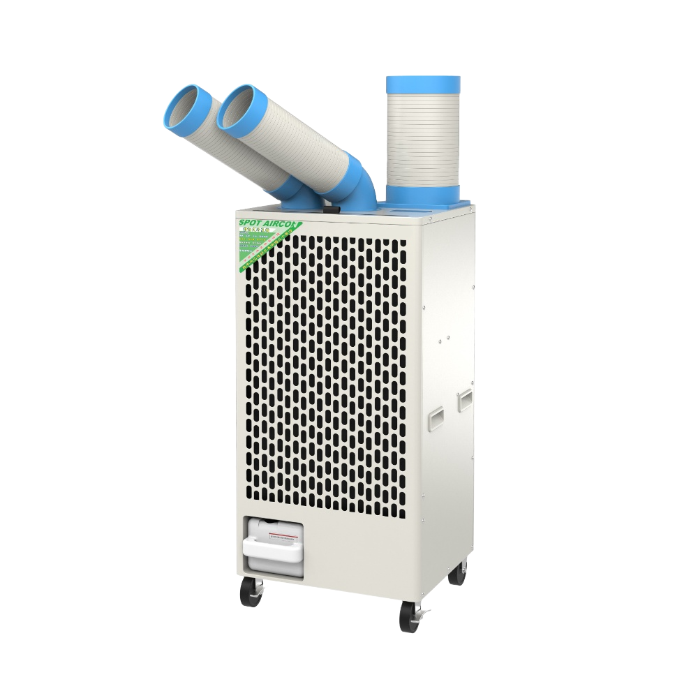 The Industrial Spot Cooler series is designed to meet the demanding cooling needs of industrial environments. These dual-hose commercial AC units are built with an all-copper wire compressor and hydrophilic inner-thread copper tube evaporative condensers to ensure stable and efficient cooling performance. Featuring eco-friendly R32/R410A refrigerant, low-noise operation, and a highly portable design, these models are the ideal solution for workshops, warehouses, server rooms, and production lines, both indoors and outdoors.